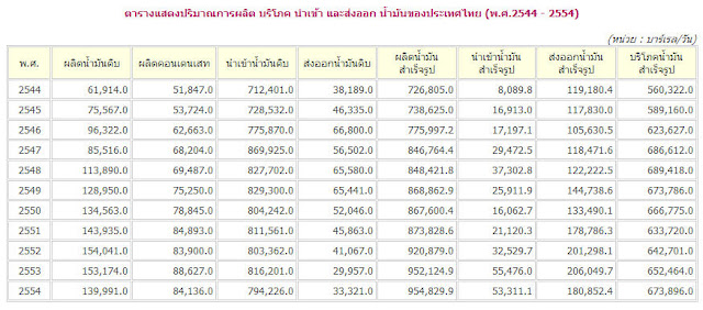 ปริมาณการบริโภคน้ำมันสำเร็จรูปของประเทศไทยในปี พ.ศ.2554 ที่ผ่านมาเท่ากับ 673,896 บาร์เรล/วัน เมื่อเทียบกับปริมาณการผลิตน้ำมันดิบที่เราสามารถทำได้เองในแต่ละวัน เท่ากับว่า ประเทศไทยจะต้องนำเข้าน้ำมันดิบอีกประมาณ 450,000 บาร์เรล/วัน แต่ในความเป็นจริงปีที่ผ่านมาประเทศไทยนำเข้าน้ำมันดิบเป็นจำนวน 794,226 บาร์เรล/วัน นั่นจึงเป็นที่มาของมูลค่าการนำเข้าน้ำมันดิบที่สูงถึง 1 ล้านล้านบาทต่อปี