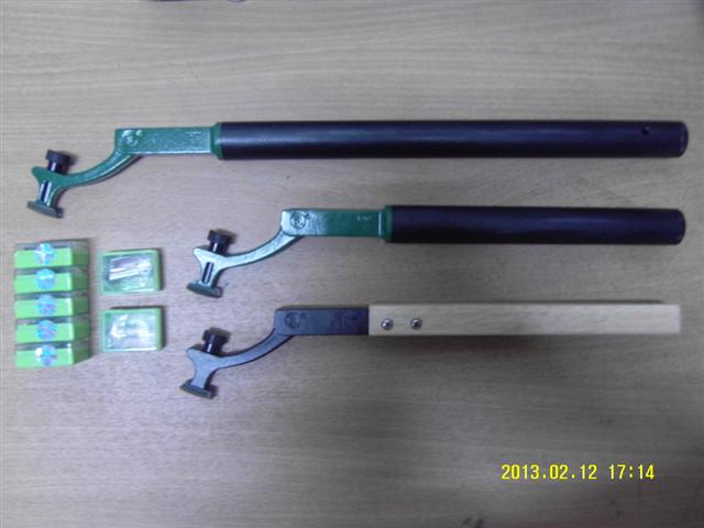 6. คมมีดอีกด้าน ใช้แซะหน้ายางหน้าต่ำ ๆ ได้ดี มีดแบบเก่าหมดสิทธิ์ เพราะปลายด้ามค้ำพื้นดิน