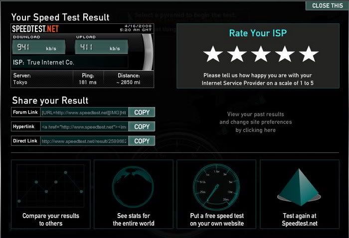 ของผมนี่วันนี้เร็วที่สุดตั้งแต่ใช้มาเลยครับ.....ใช้โทรศัพท์ต่อเน็ตเป็นOver the air(OTA) Modemครับ เยี่ยม