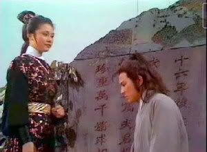 กิมย้ง ทำให้ผู้ชมสับสนเรื่องตัวหนังสือบนแผ่นหินว่าเป็นฝีมือของอึ้งย้งหรือเซียวเหล่งนึ่งเป็นผู้เขียนไว้