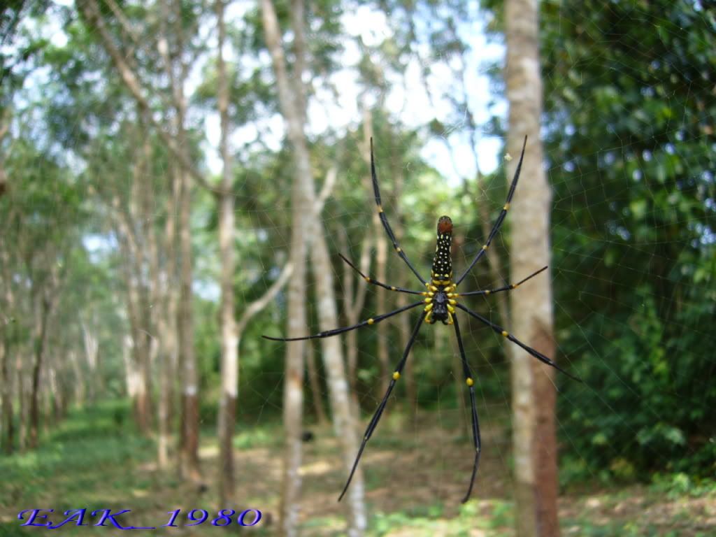 ลงใต้ไปวันหยุดวันพ่อ  สายๆออกไปเดินเล่นในสวนยางบ้านแฟนที่ จ.ระนอง พยายามหาตัวอะไรมาเป็นนายแบบ...เดินอยู่ร่วมชั่วโมง  สรุปได้นายแบบเดี่ยวๆตัวเดียวเลย  อยากรู้จริงๆว่าชนิดอะไร สีสวยแถมชักใยกว้างดี ประมาณ1x1เมตร สวยดีค่ะ