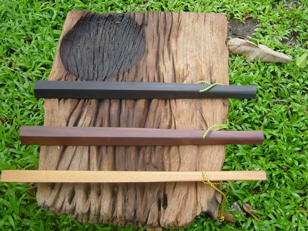 ไม้คมแฝก ใช้ไม้เนื้อแข็ง พวก ชิงชัน เหลาให้เป็นเหลี่ยมคม จะคมเหมือนขอบไม้บรรทัดเหล็ก ตีตรงไหนก็แตกตรงนั้น ไม้คมแฝกส่วนใหญ่จะมีลักษณะคล้ายสี่เหลี่ยมขนมเปียกปูน แต่แบบนี้ตียากเพราะต้องจับให้เหมาะเหลี่ยม บางทีก็เจอที่เหลารูปหกเหลี่ยม แปดเหลี่ยมเหมือนกัน แบบหลายเหลี่ยมตีแตกง่าย โดนตรงไหนก็แตกแต่แผลไม่ลึกเท่าแบบขนมเปียกปูน