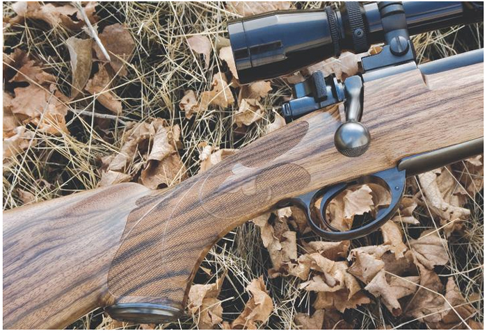 Mauser sporter rifle, English Walnut stock, 22 lpi point pattern checkering.